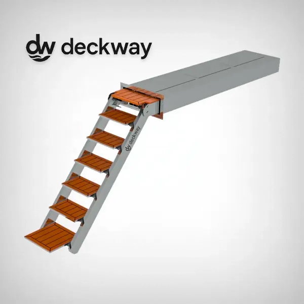 Deckway’s Multifunctional electric gangway & swim ladder combines elegance, safety, and effortless yacht boarding. Crafted from marine-grade 316 stainless steel, it operates fully electric on 12V–24V DC without hydraulics, ensuring smooth boarding and safe sea access.